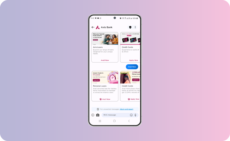 Axis banks 's RCS chatbot brought significant improvement across key business metrics. By leveraging RCS , the team at Axis Bank enhanced customer interactions and streamlined the process of applying to Axis loans, credit cards and Fixed deposits directly through interactive chat sessions. This innovation not only provided customers with a seamless and convenient application process but also contributed to a marked increase in engagement and conversion rates.