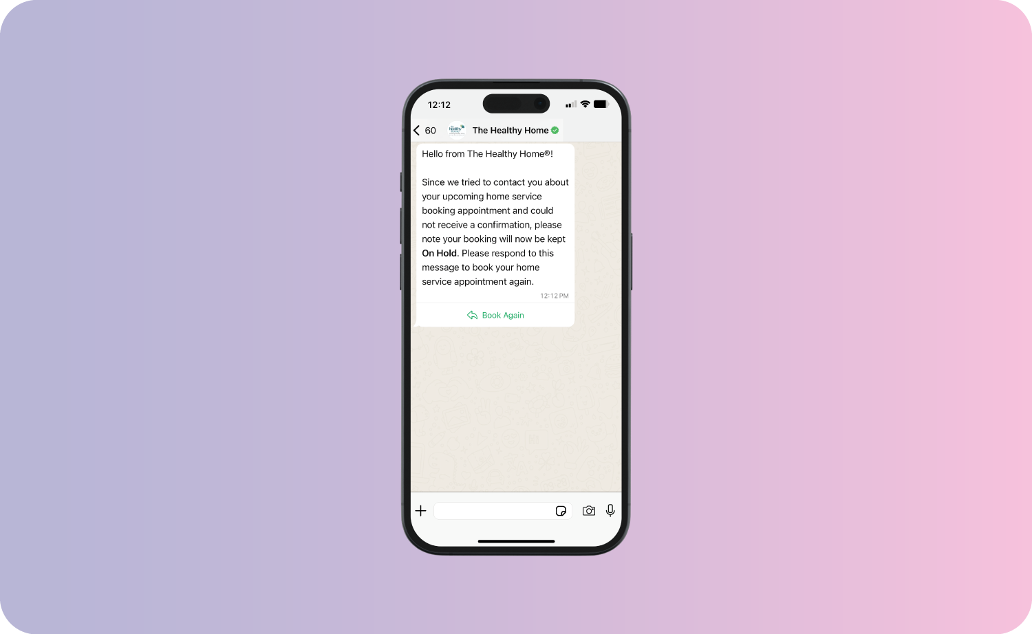 Nudge users to complete booking: To improve conversions, The Healthy Home set up nudges for users who didn’t complete their bookings. These thoughtful and contextual messages improved bookings and brought in additional revenue by minimising drop-offs.