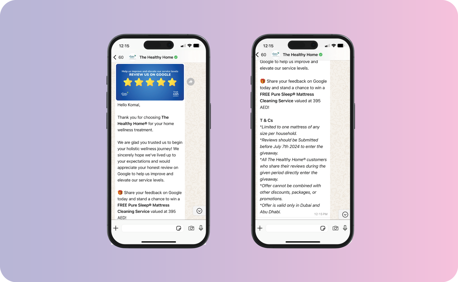 - 15% Increase in Retention Rate: By using WhatsApp for service reminders and re-engagement messages, The Healthy Home saw a notable increase in customer retention.