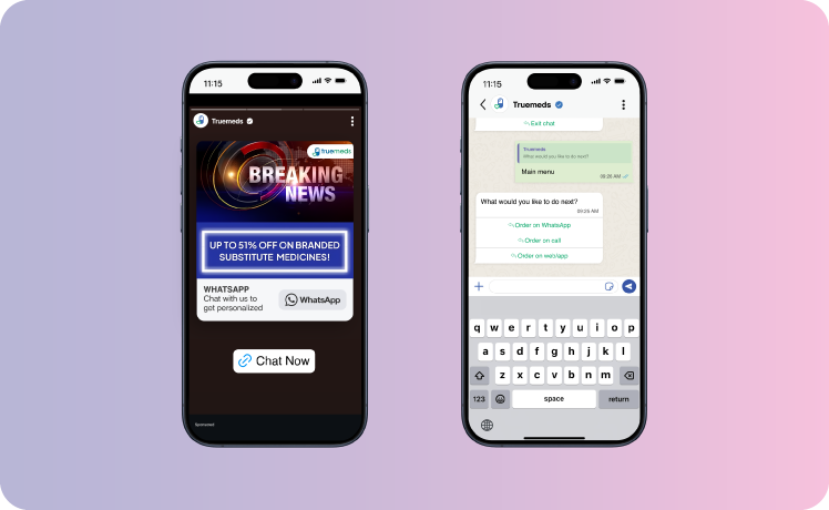 Truemeds’ CTWA-led campaign showcased how personalised, frictionless bot-to-agent hand off journeys on WhatsApp can solve the complexities of prescription medicine ordering. By offering three clear pathways like chat, call, and web, Truemeds ensured user convenience while capturing high-intent leads.