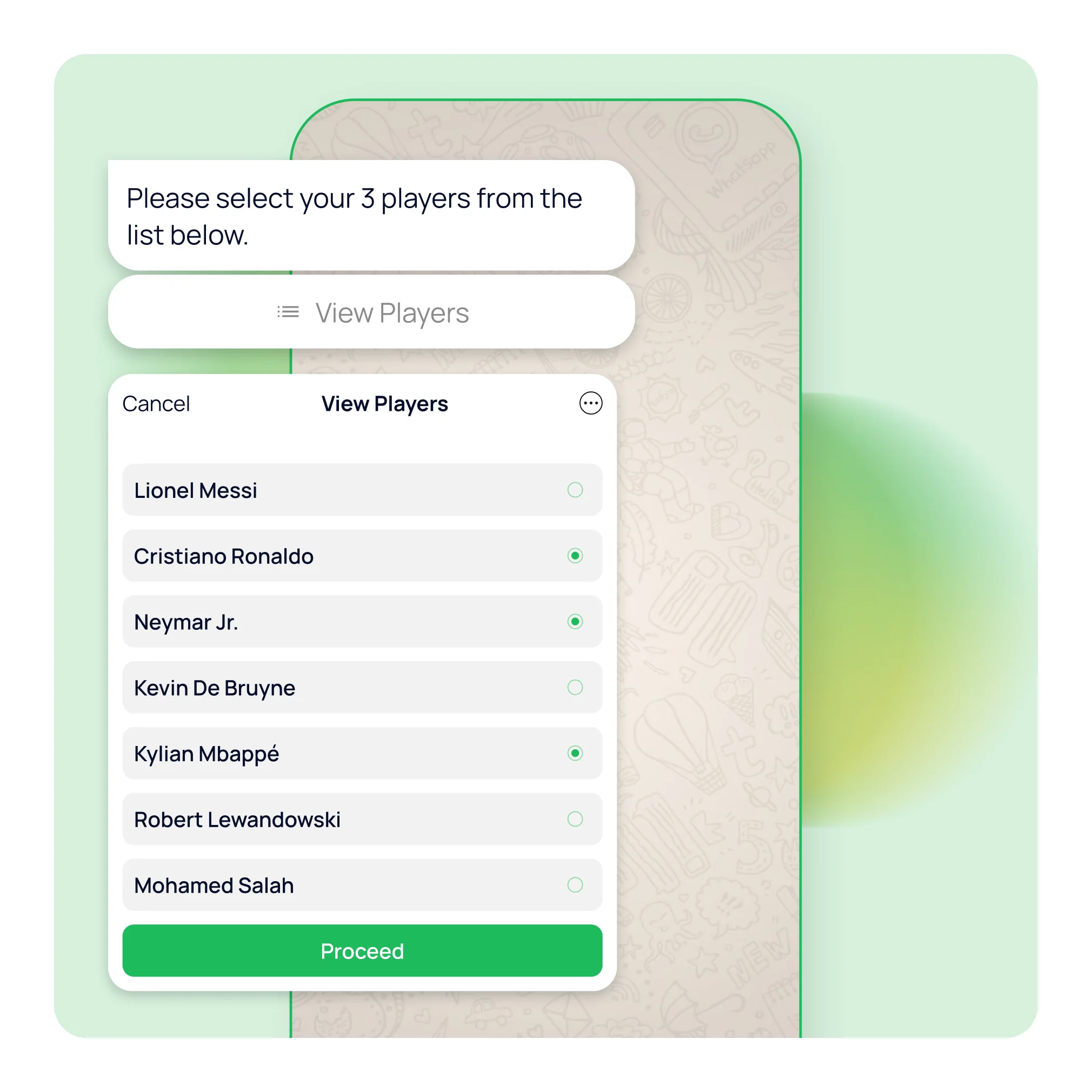 Leading Fantasy Sports PlatformKarix enabled fantasy team creation and wallet recharges directly inside WhatsApp, moving beyond app-only journeys.