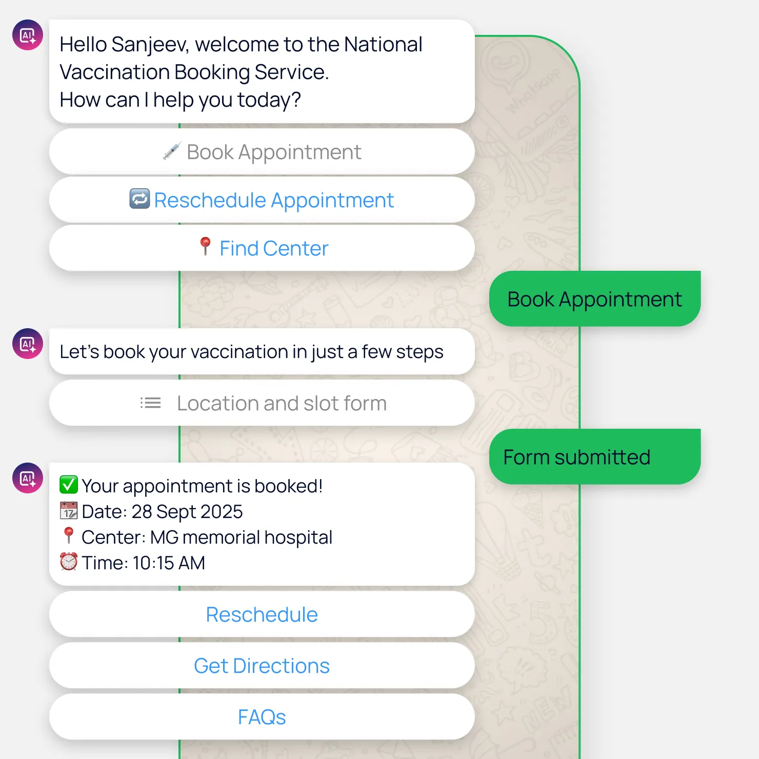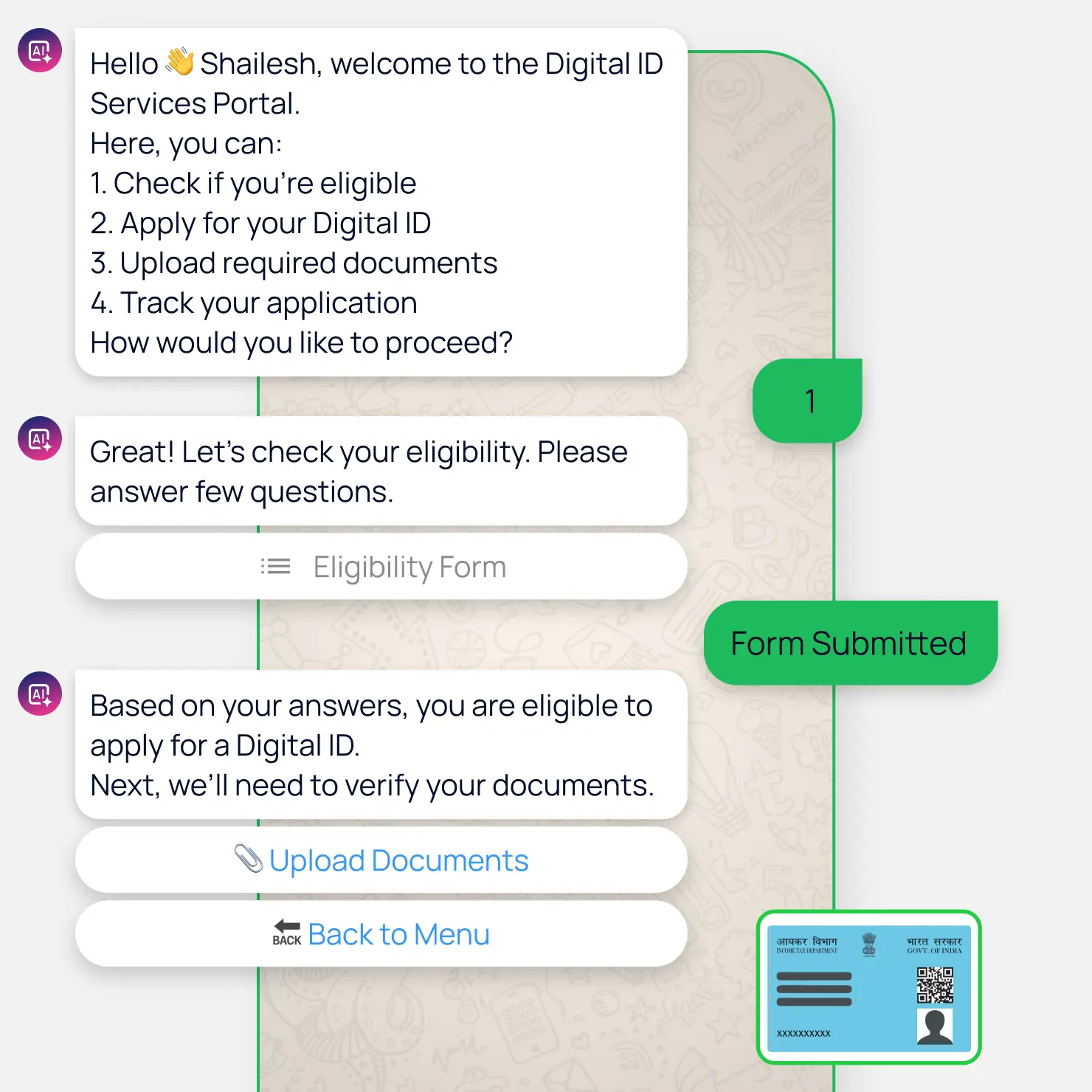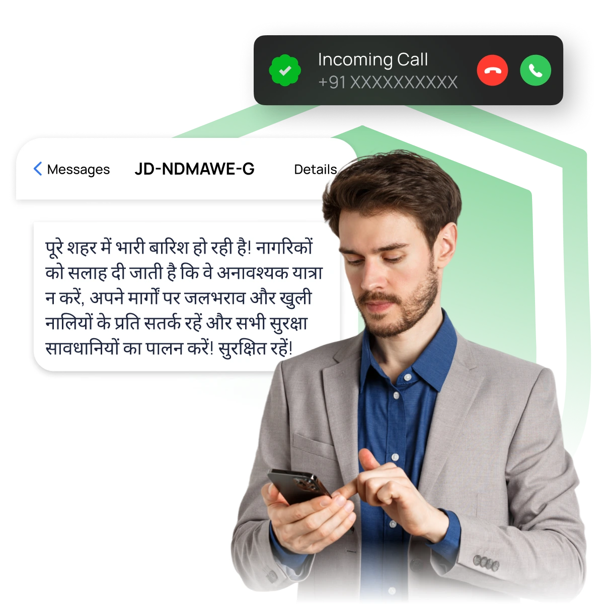 Deliver verified communication over WhatsApp, RCS, SMS, Voice, Email, and Truecaller - with fallback channels to guarantee delivery even in remote or low-connectivity areas.