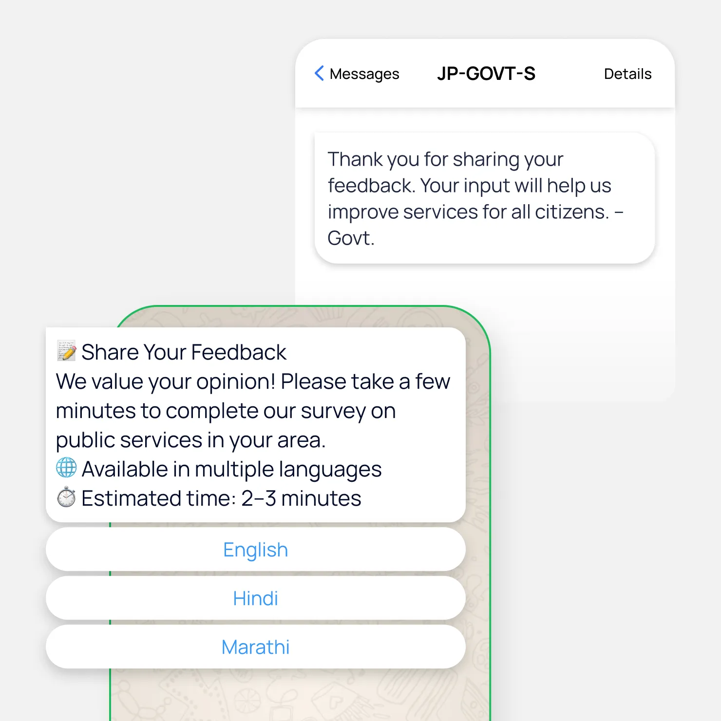 Karix empowers government agencies to digitise and automate citizen engagement with reliability, accountability, and scale - whether it’s awareness campaigns, service enrollment, or grievance redressal.