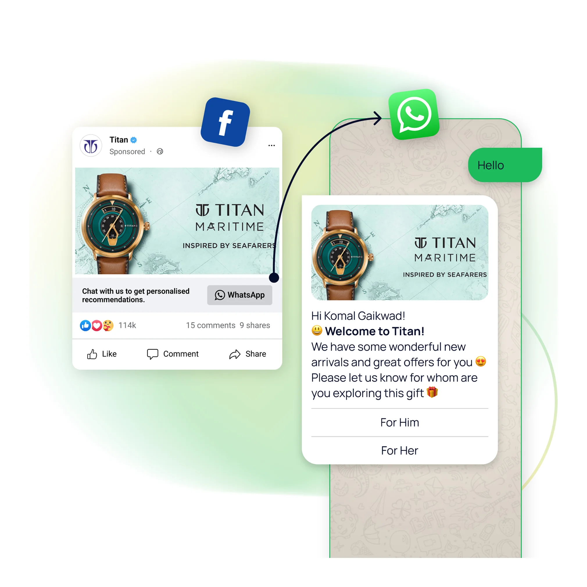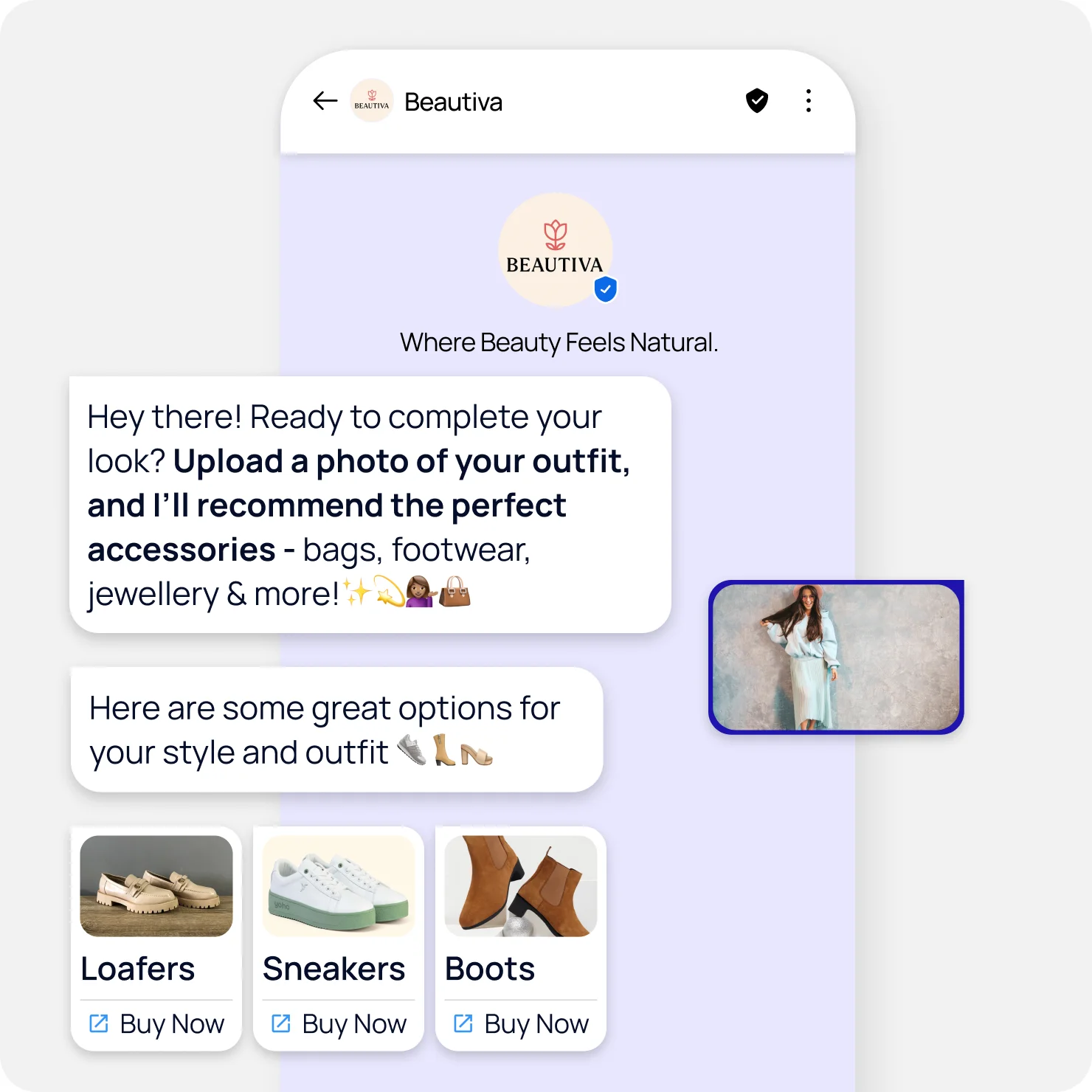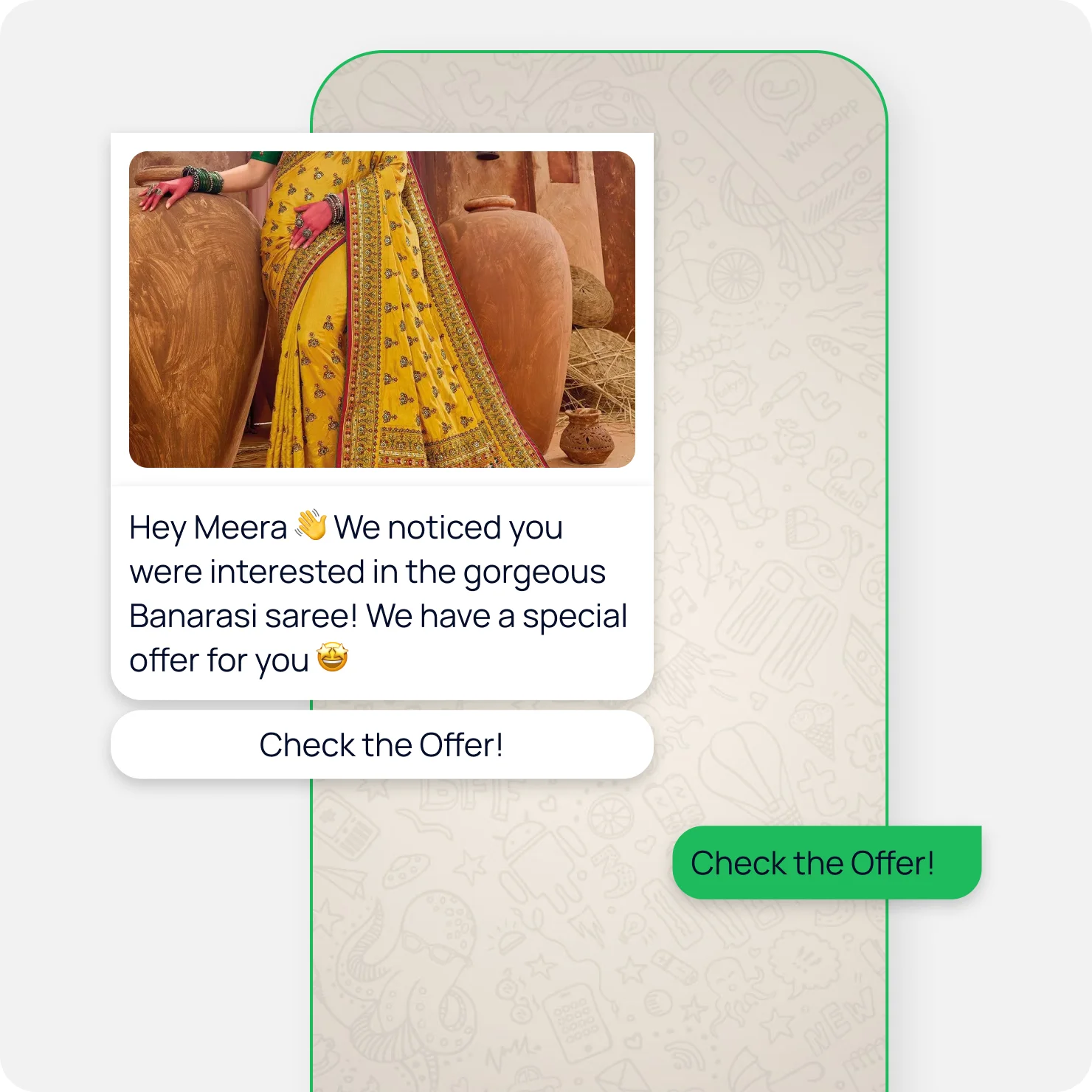 Offer end-to-end chat-led shopping journeys - from product catalogues and carousels to cart creation and in-chat payments via UPI or cards.