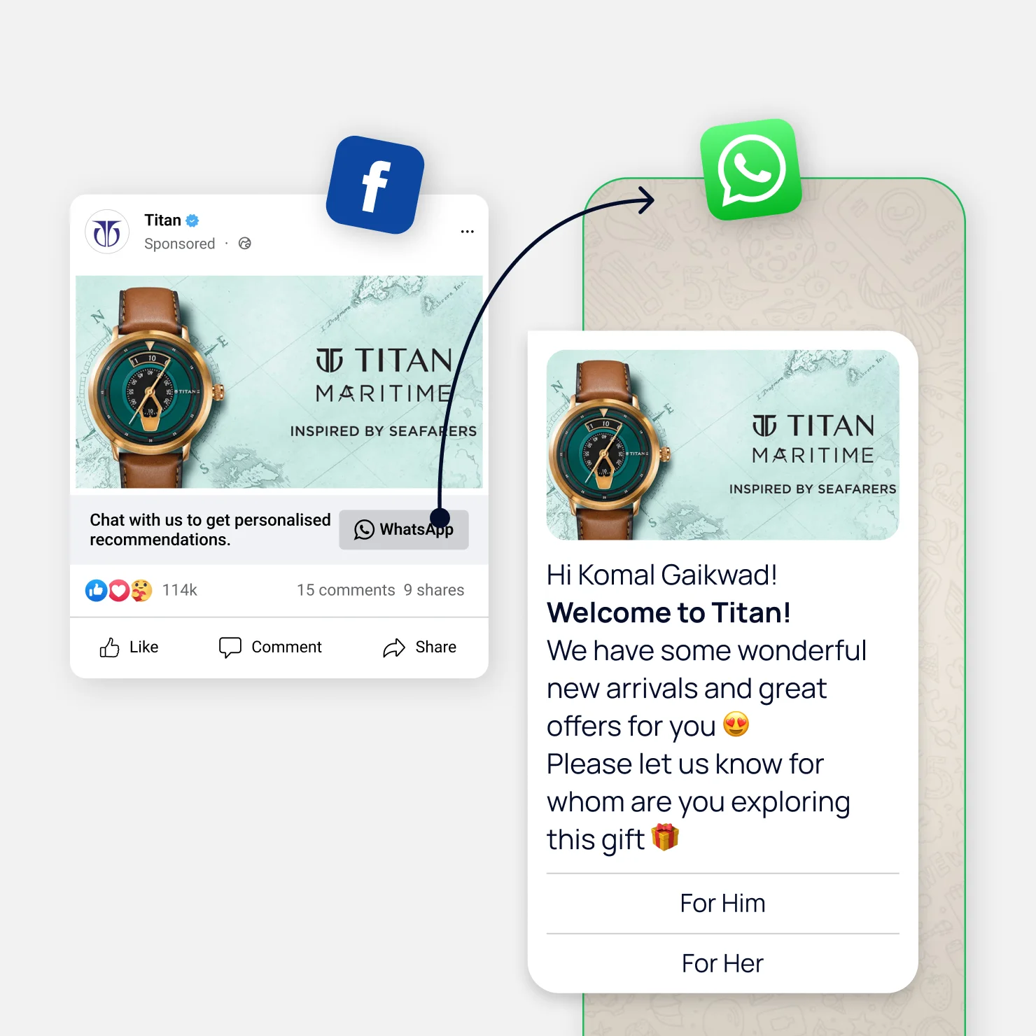 WhatsApp flows combined with enquiry forms for real-time product discovery.