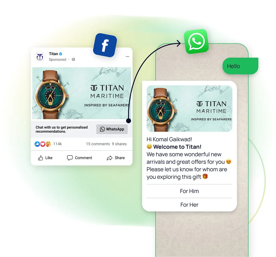 Move your prospects from Facebook and Instagram ads directly into WhatsApp conversations - where they're 3x more likely to convert.