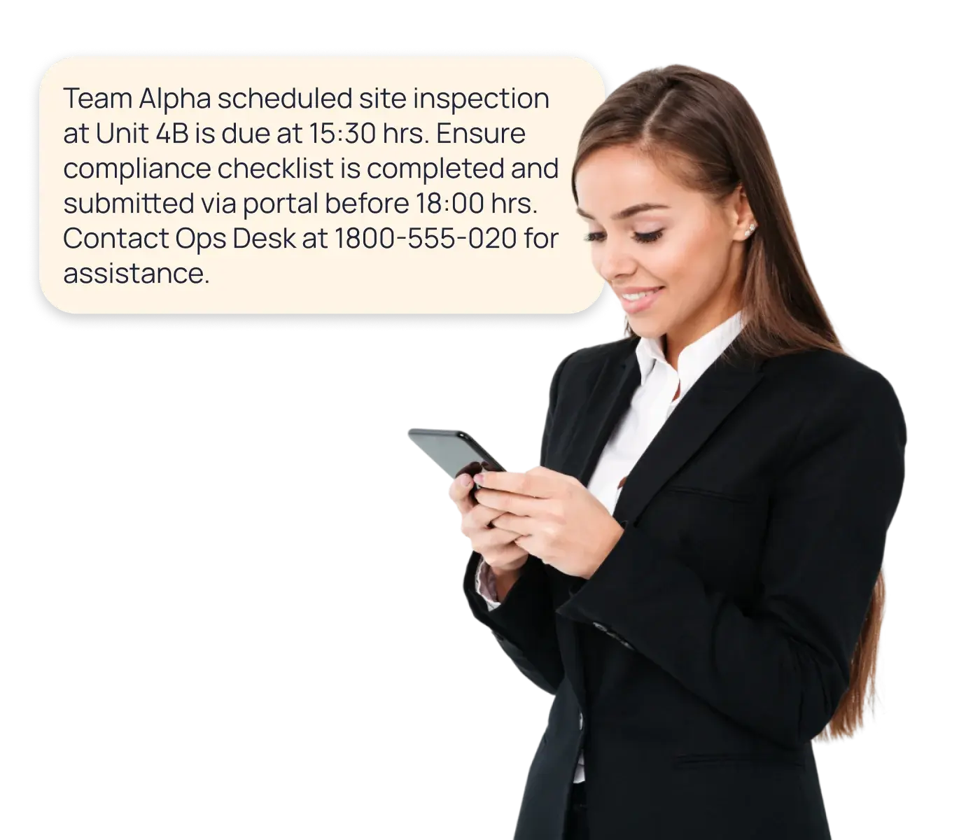 Purpose-built for internal teams, field staff, and operational alerts requiring compliance.